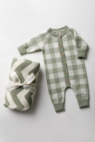 If you want to gift something quintessentially 'Isla & Fraser' then this is the gift set for you. It doesn't get more iconic than this Signature Sage Bundle, featuring the exceptionally soft chevron baby blanket and gingham romper. Beautiful, practical, and guaranteed to be cherished for years to come.