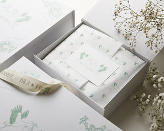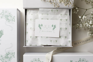 Make it extra special by selecting the gift wrap option at checkout and we will gift wrap your chosen items in our luxurious stork tissue paper and send them in one of our beautiful Isla & Fraser gift boxes.